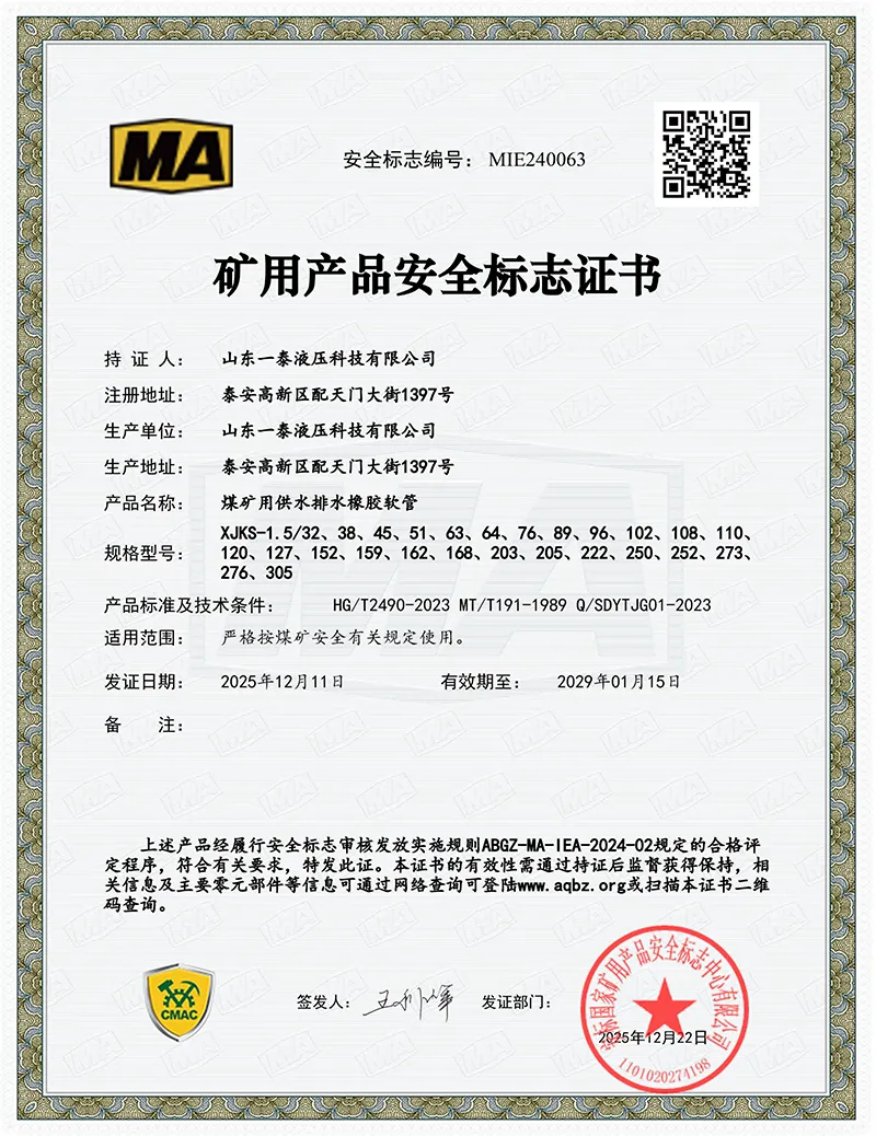Certifikát bezpečnostnej značky produktu MA uhoľnej bezpečnosti.